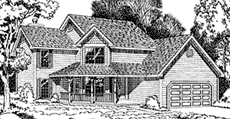 This pleasant traditional design has a farmhouse flavour exterior that incorporates a covered porch and features a circle wood louver on its garage, giving this design a feeling of sturdiness. A two-car garage is also added into this design. Inside, on the first level to the right of the foyer, is a formal dining room complete with a bay window and an elevated ceiling. To the left of the foyer is the living room with a wood-burning fireplace. The kitchen is connected to the breakfast room, and there is also a room for the laundry facilities. A half-bath is also featured on the first floor. The master bedroom, on the second floor, has its own private bath and walk-in closet.